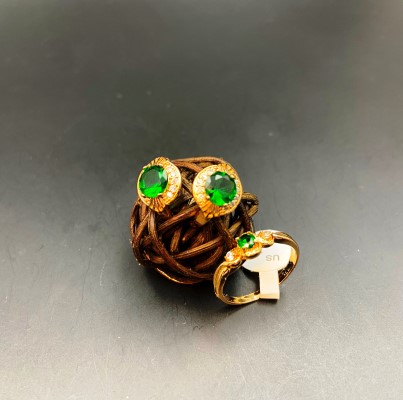Описание: Стильный набор "Изумрудный дождь" из сережек с английским надежным замком и кольца. Гальваническое покрытие, гипоаллергенные. Серьги и кольцо украшены камушками фианитов.