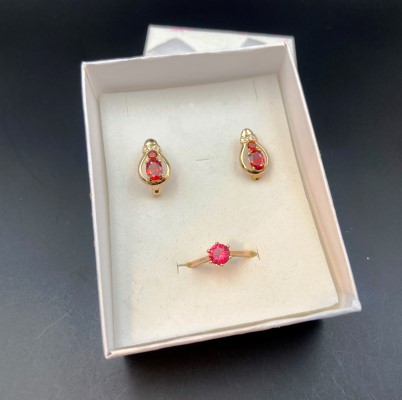Описание: Стильный набор "Красное пламя" из сережек с английским замком и кольца. Гальваническое покрытие, гипоаллергенные.