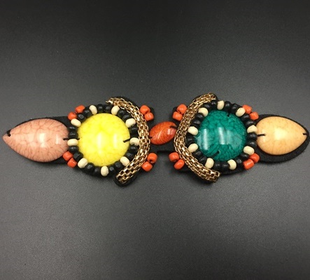 Украшение - оригинальное для женской одежды с использованием декоративных элементов ( бусин, стеклярус, пластик, ракушки, керамика). Ручная работа.