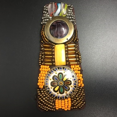 Украшение - оригинальное для женской одежды с использованием декоративных элементов ( бусин, стеклярус, пластик, ракушки, керамика). Ручная работа.