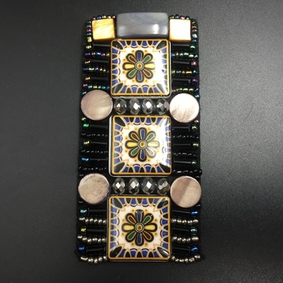 Украшение - оригинальное для женской одежды с использованием декоративных элементов ( бусин, стеклярус, пластик, ракушки, керамика). Ручная работа.